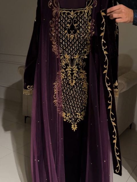 بليزر مع مخمل بطبعة بلغاري وتطريز ذهبي